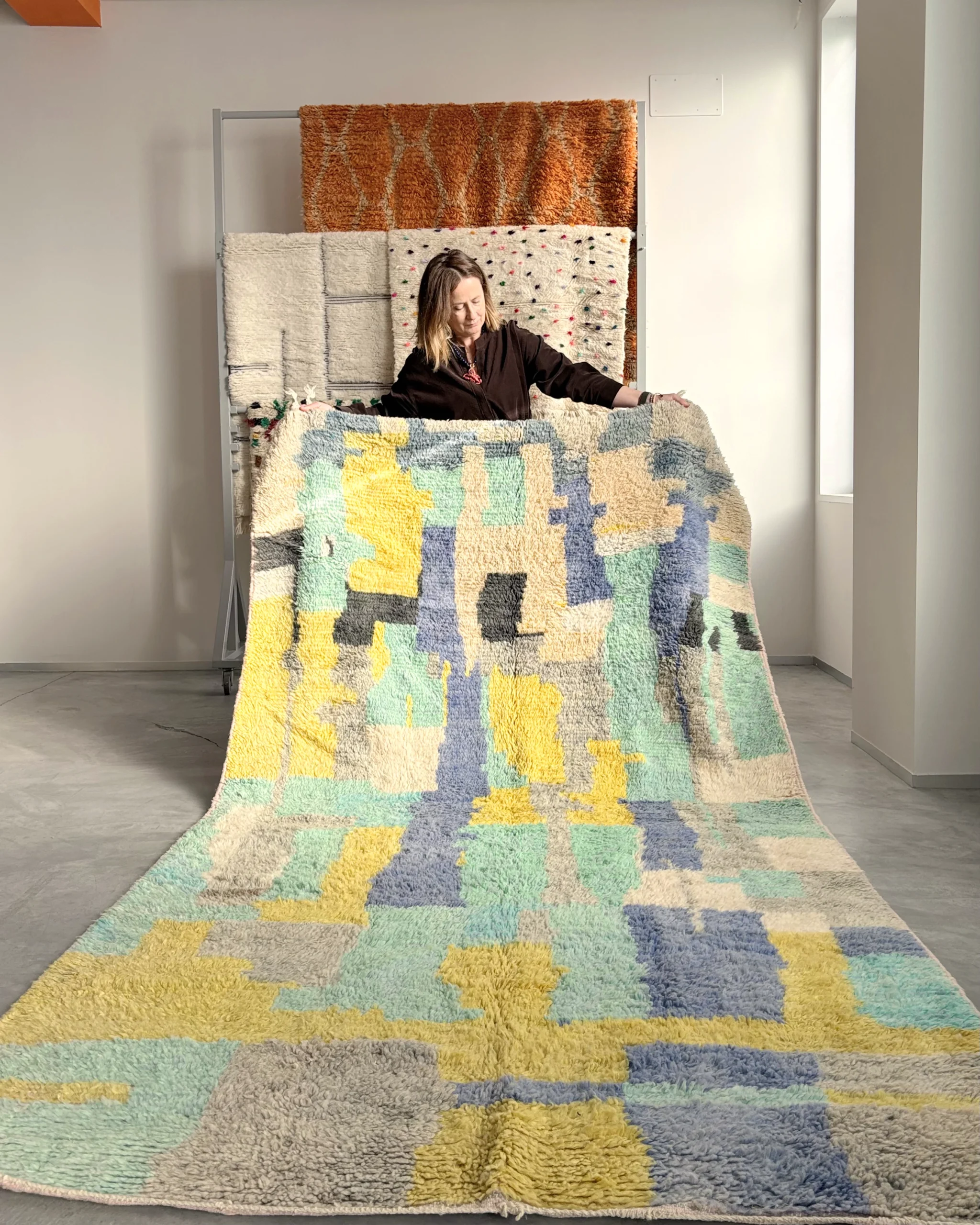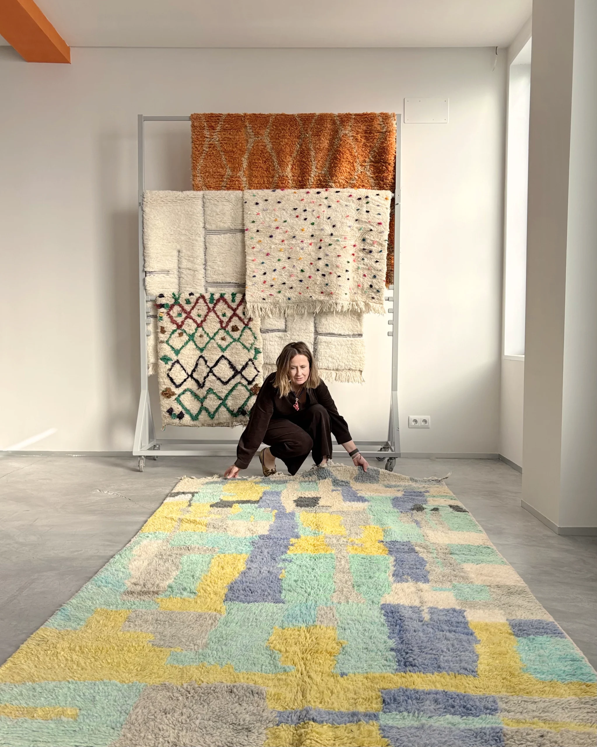 Cada alfombra Berberian es una creación única, seleccionada o diseñada por nosotros, y ha sido tejida a mano por mujeres bereber en distintas regiones del Atlas marroquí.